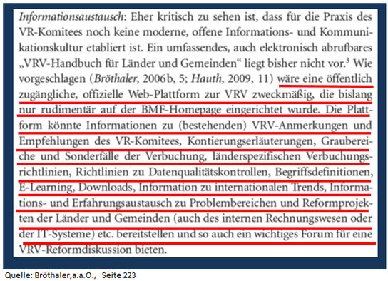 In jedem Bundesland müssten schon längst Arbeitsgruppen für die Umstellung der Kameralistik auf die Doppik tätig sein. Und deren Problemfelder decken sich in vielen Dingen mit jenen auf Gemeindeebene! Die Steirer sind dabei schon sehr weit vorangeschritten! Sie planen und buchen auf Landesebene bereits mit Hilfe der Doppik! Die Kenntnisse und Erkenntnisse der jeweiligen Arbeitsgruppen sollte man daher auf der Plattform veröffentlichen.